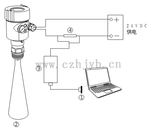 (4~20) mA/HART(四線制) 供電電源和電流信號分開,各自分別使用一根兩芯屏蔽電纜線。具體供電電壓范圍參見技術數據。